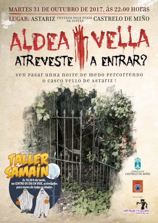 O vindeiro martes 31 de outubro a partir das 22:00 horas terá lugar a pasaxe do terror de Aldea Vella en Astariz. Taller de Samaín as 18:30 horas no Centro de Día de Vide.